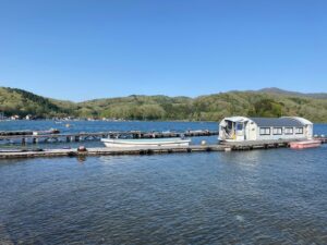 夏までしまってあるのか分かりませんが、野尻湖湖畔にある建物から、スワンボートが私を見下ろしていましたが、現代アートっぽくみえるのは私だけでしょうか?